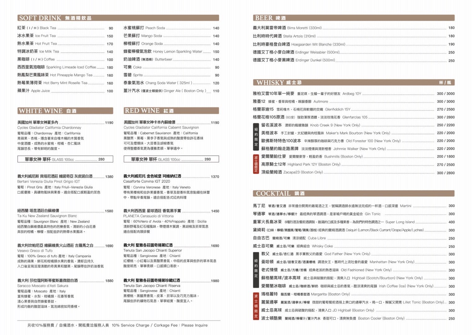 ( 中山區 Wayne’s Boston / 信義區 Wayne’s New York)