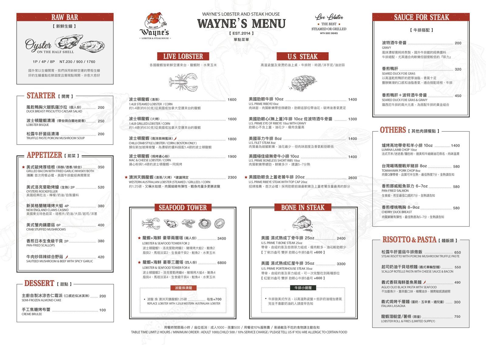 主打波士頓龍蝦、豪華龍蝦海鮮塔及美國牛排